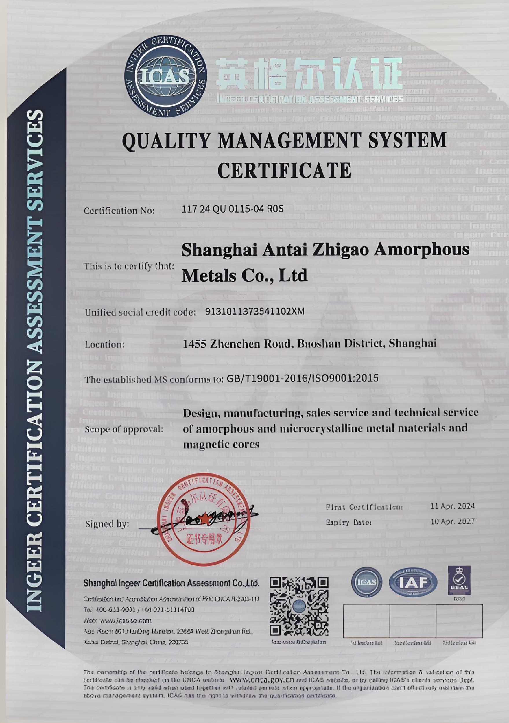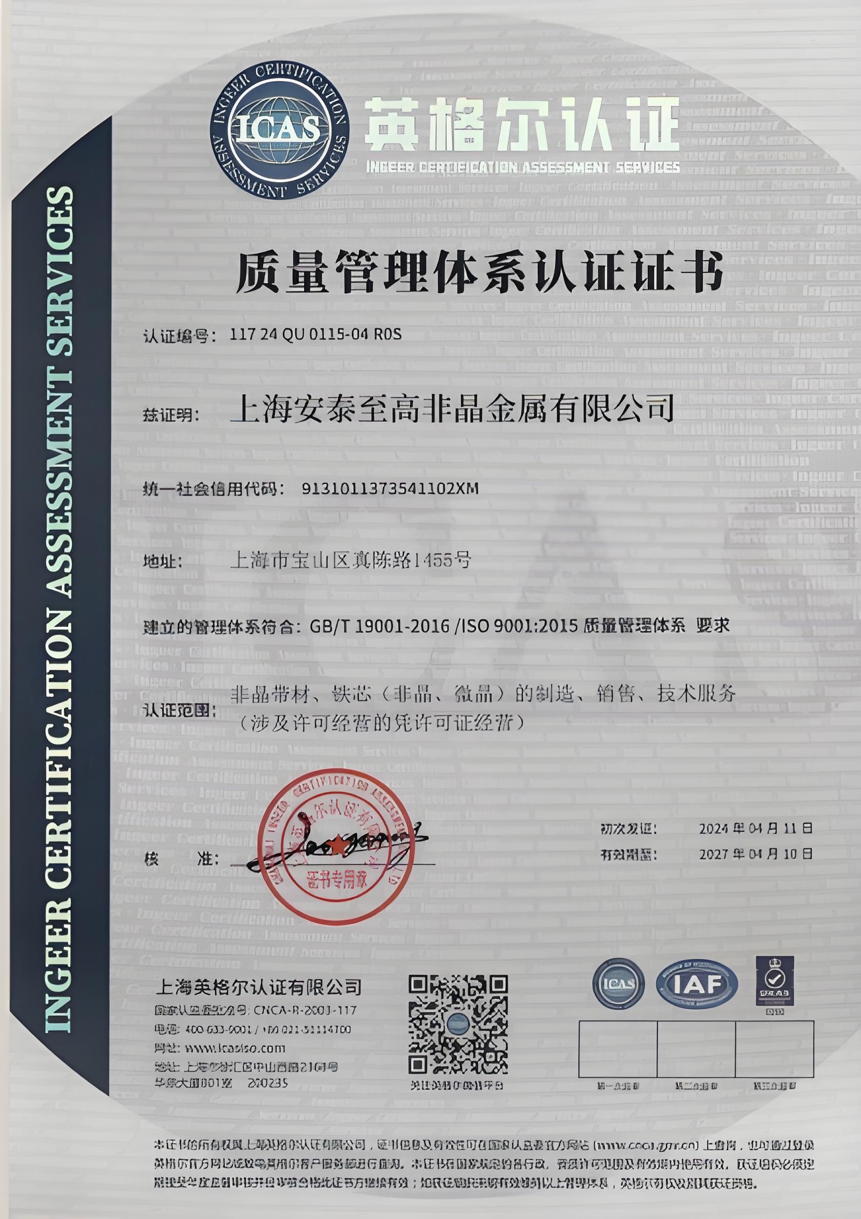 至高非晶以成熟的质量管理体系为依托,以客户需求为关注焦点,聚焦细分市场领域。形成了以非晶钎焊料带材、非晶防盗标签带材、纳米晶铁芯为主要方向的产品序列。